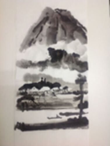 【水墨画】「山のある山村」イラスト/Toshiaki [pixiv]